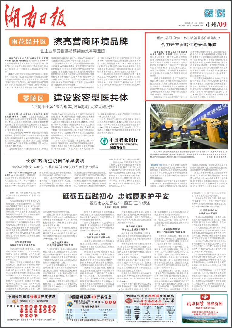 湖南日报1月13日讯(全媒体记者 刘家璇 通讯员 何伦波)近日,郴州市、邵阳市、永州市三地中级人民法院共同签署《南岭生态环境司法保护协作框架协议》,并联合发布《南岭宣言》。这是三地法院首次建立跨行政区划的生态环境司法协同保护机制,旨在汇聚司法合力,共同守护南岭这一华南地区重要的生态安全屏障,为区域绿色发展提供坚实法治保障。
