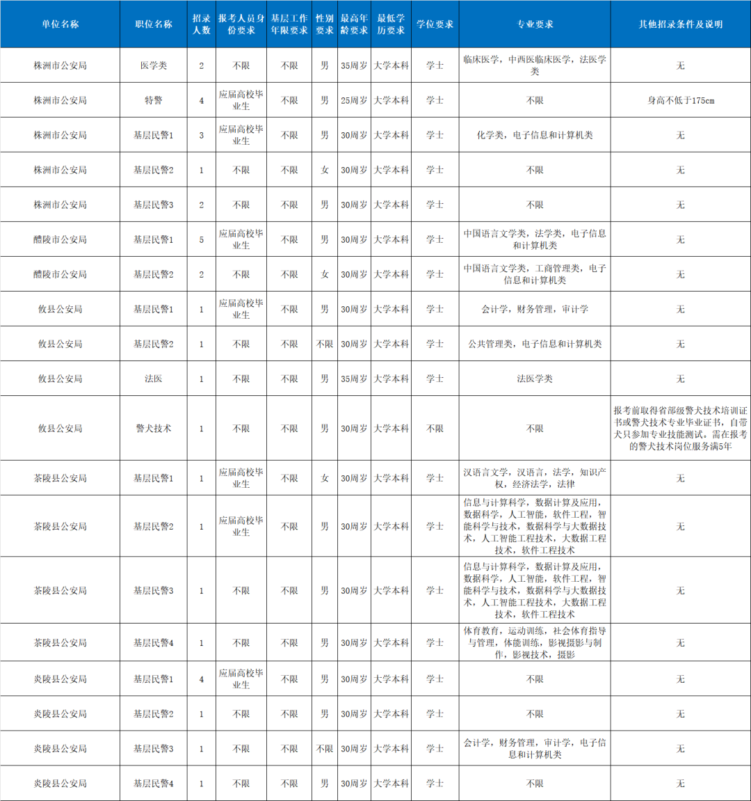 笔试最低开考比例一般为5∶1。医学类人民警察,定向招录村(社区)干部(含村〈社区〉党组织书记)、乡镇(街道)事业站所工作人员的职位,面向残疾人招录的职位,以及艰苦边远地区县乡机关公务员等职位,笔试最低开考比例可以为3∶1。法官助理、检察官助理职位,警犬技术职位,笔试最低开考比例可以为2∶1。具体笔试最低开考比例以招录职位表为准。