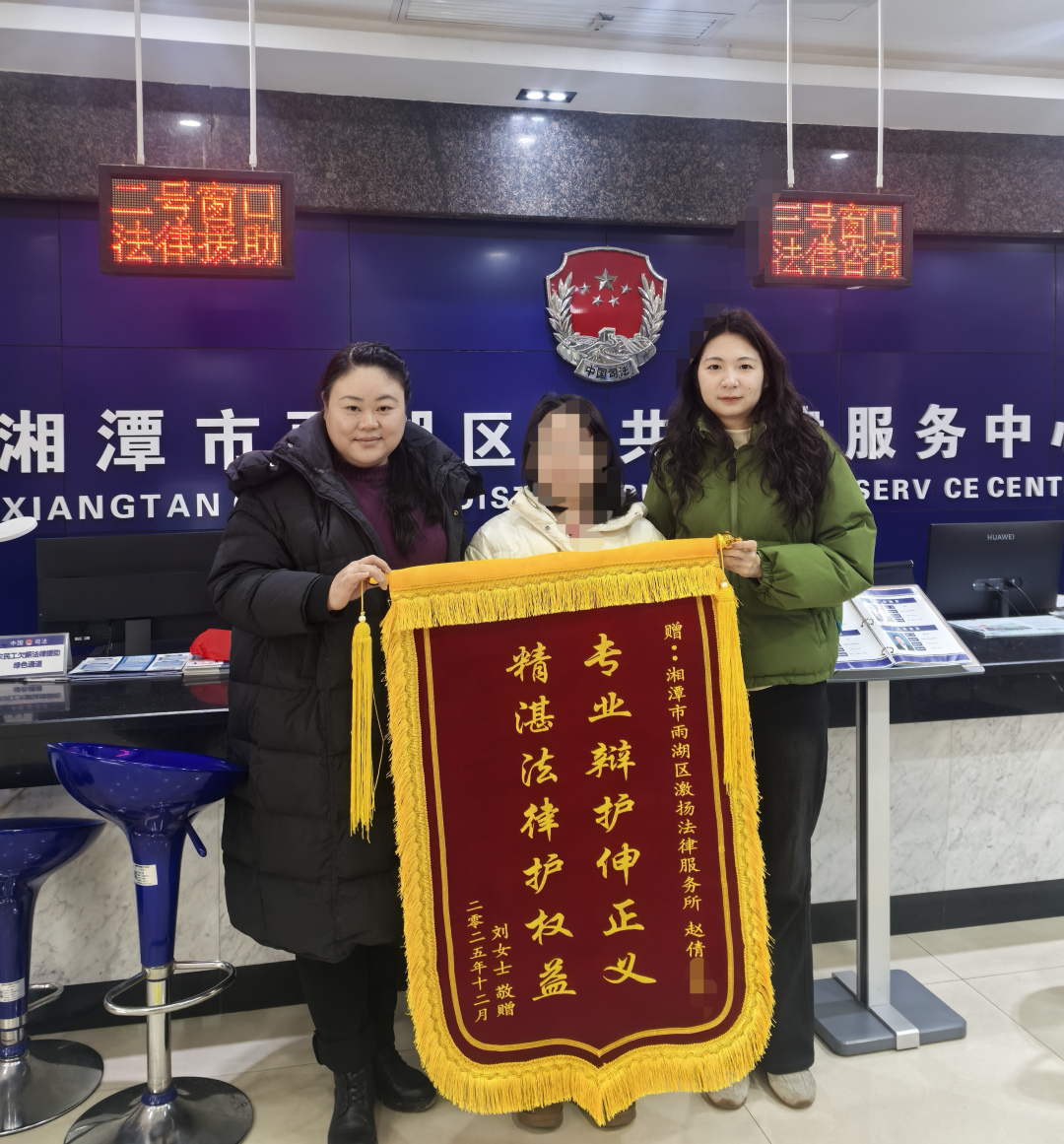 湖南日报·新湖南客户端1月14日讯(通讯员 刘思洋)近日,一面写着“专业辩护伸正义 精湛法律护权益”锦旗被送到雨湖区法律援助中心工作人员手中。受援人刘某紧紧握住工作人员的手,表达着心中的感激。