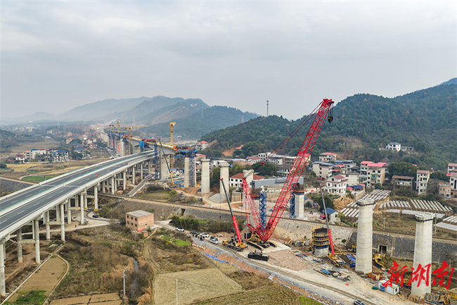 The Luhong River Grand Bridge crossing over Yiyang-Zhanjiang Railway in Yongzhou City completed the construction of its steel cover beam on January 12, laying a solid foundation for follow-up girder erection. The bridge is a part of the Shaoyang-Yongzhou High-speed Railway. It is constructed by the China Railway 25th Bureau Group, with a total length of 3,050 meters. Crossing over an expressway, a railway, a provincial highway, and a river, it is one of the most challenged projects along the Shaoyang-Yongzhou High-speed Railway. So far, 90% of the main structural work on the bridge has been completed.