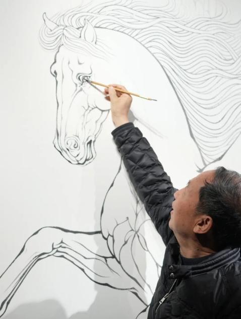 启幕环节,艺术前辈魏怀亮与青年艺术家代表谌骏共同为作品“点睛”,马嘶声与动感音乐激活现场,寓意艺术能量与新年生机。