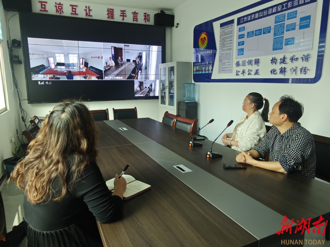 洪江市江市镇综治中心视频连线调解纠纷现场