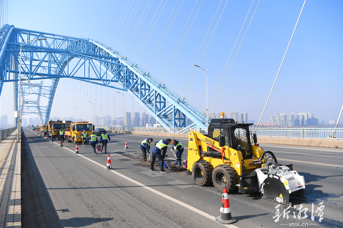 针对该桥重型车辆通行密集,桥面长期承受较大压力的实际情况,湘潭市桥梁维护处展开专项维修,采用铣刨原破损路面、重新摊铺高性能沥青的工艺,为大桥“强筋健骨”,确保即将到来的春运行车安全,道路畅通。