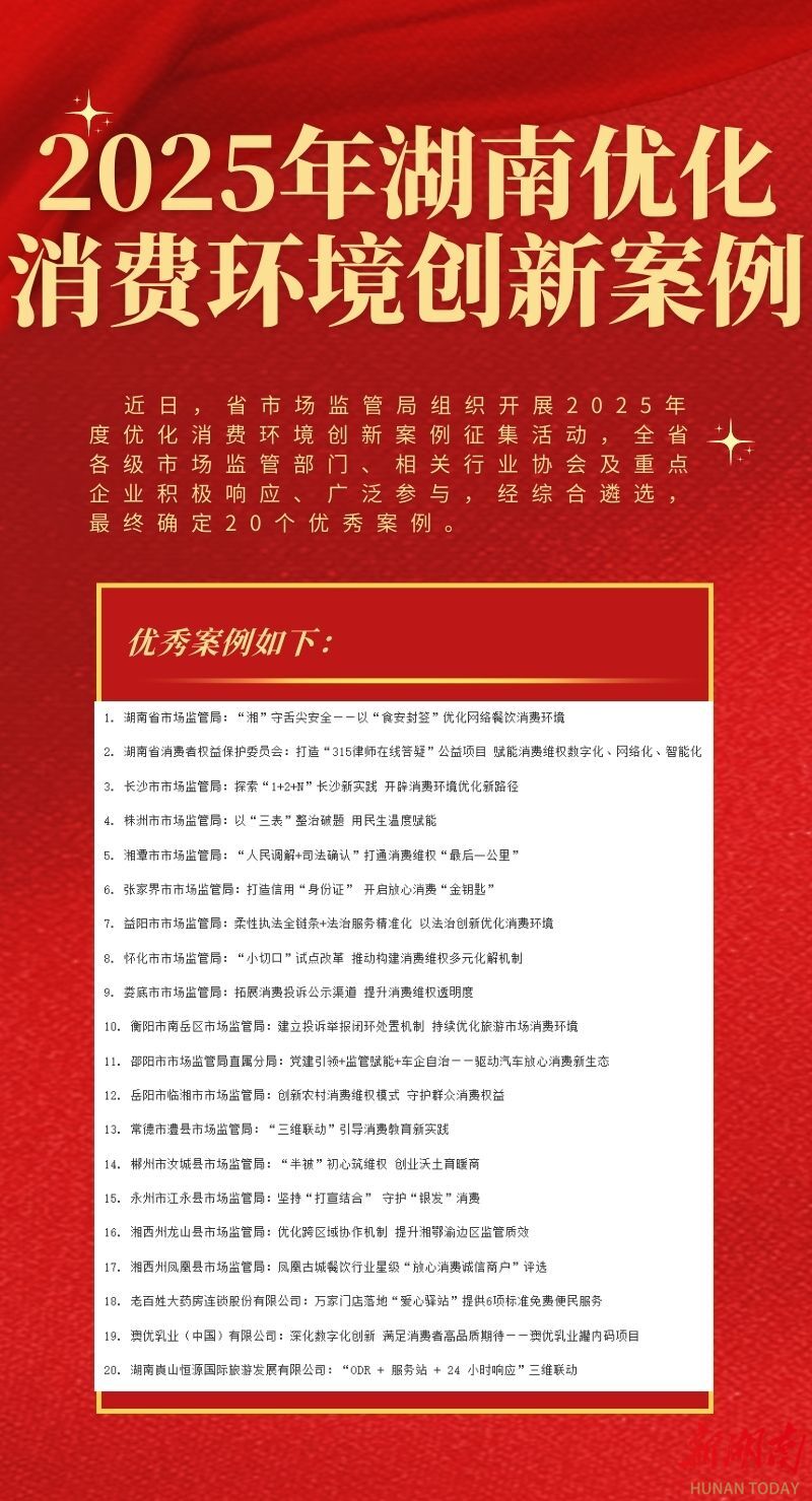从城市到乡村,从传统消费到新型消费,从监管创新到政企协同,湖南市场监管部门的一系列优秀实践,不仅解决了一批具体消费痛点,更形成了可复制、可持续的“湖南经验”。这些实践既提升了消费者的获得感、幸福感、安全感,也为激发市场活力、推动消费升级提供了有力支撑,为全国消费环境优化贡献了湖南智慧与湖南方案。