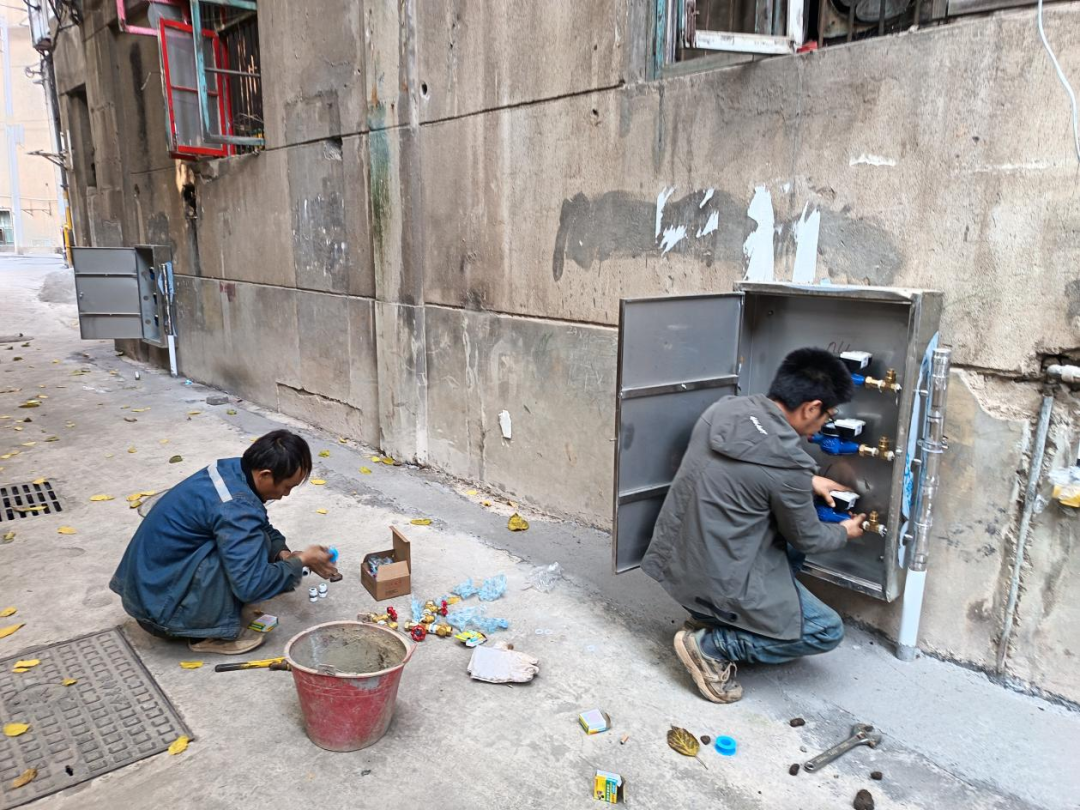 带着这份沉甸甸的“民意图谱”,社区主动多次对接市自来水公司,邀请技术人员反复现场勘查,共同商讨管网走向、表箱位置等细节。工程总费用9.9万元,经过多轮协商,一套兼顾实用性、经济性的“一户一表”改造方案最终敲定:为每户更换全新供水支管,安装独立智能远传水表,实现从“源头”到“龙头”的全面升级。