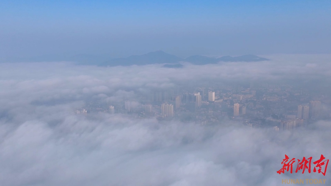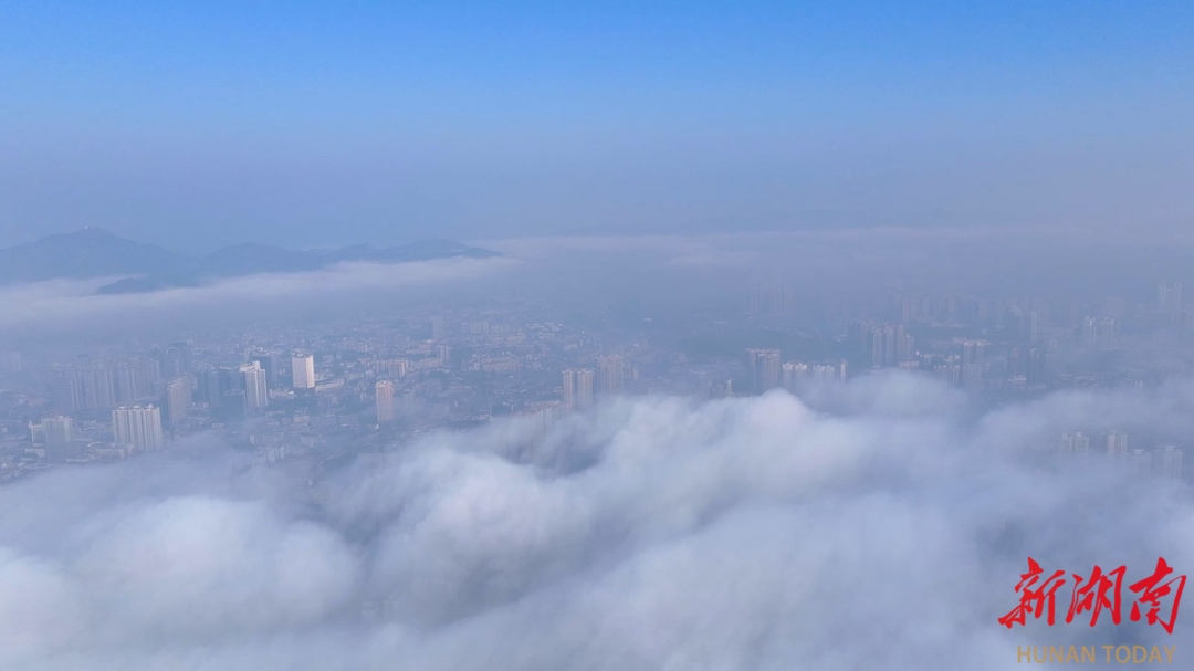 湖南日报·新湖南客户端1月14日讯(通讯员 肖鹏)受昼夜温差加大影响,连日来,鹤城区出现平流雾景观,城市笼罩在氤氲雾气之中,薄雾如同轻纱般流动,城市建筑在翻涌的云海中若隐若现,如梦似幻,恍若置身天空之城。