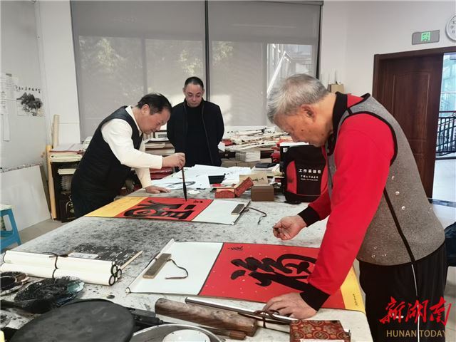 1月13日,书法家汪建国与崔国强开展艺术交流。这位八旬老人深耕传统八十余载,至今仍保持着每日5小时的创作习惯。汪建国五体皆精,在毛体书法、江永女书等领域潜心研究并有所感悟,其作品成为架起传统文化传承的多维立交桥,是文化交流的艺术纽带。 胡立强 摄(湖南图片库)