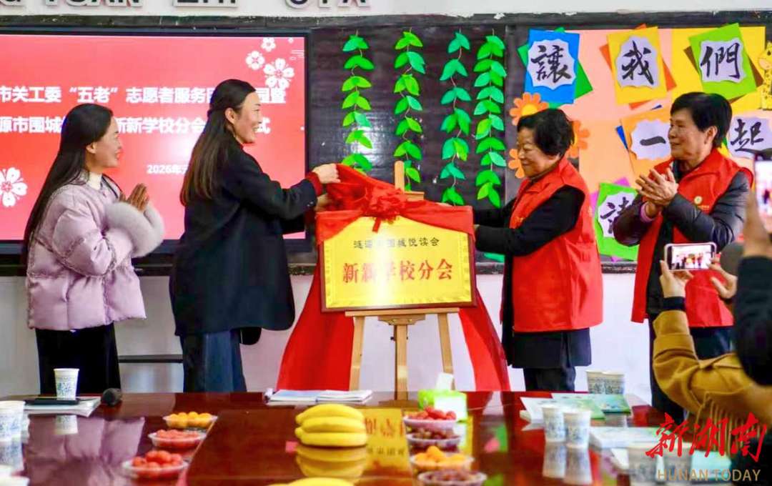 湖南日报·新湖南客户端1月14日讯(通讯员 龙尔芳 吴涛)1月13日,阳光明媚。冬日暖阳下,涟源市蓝田街道新新学校迎来了一群特殊的客人——涟源市关工委组织的“五老”志愿服务团走进校园看望师生,同时举行了涟源市围城悦读会新新分会的揭牌仪式。