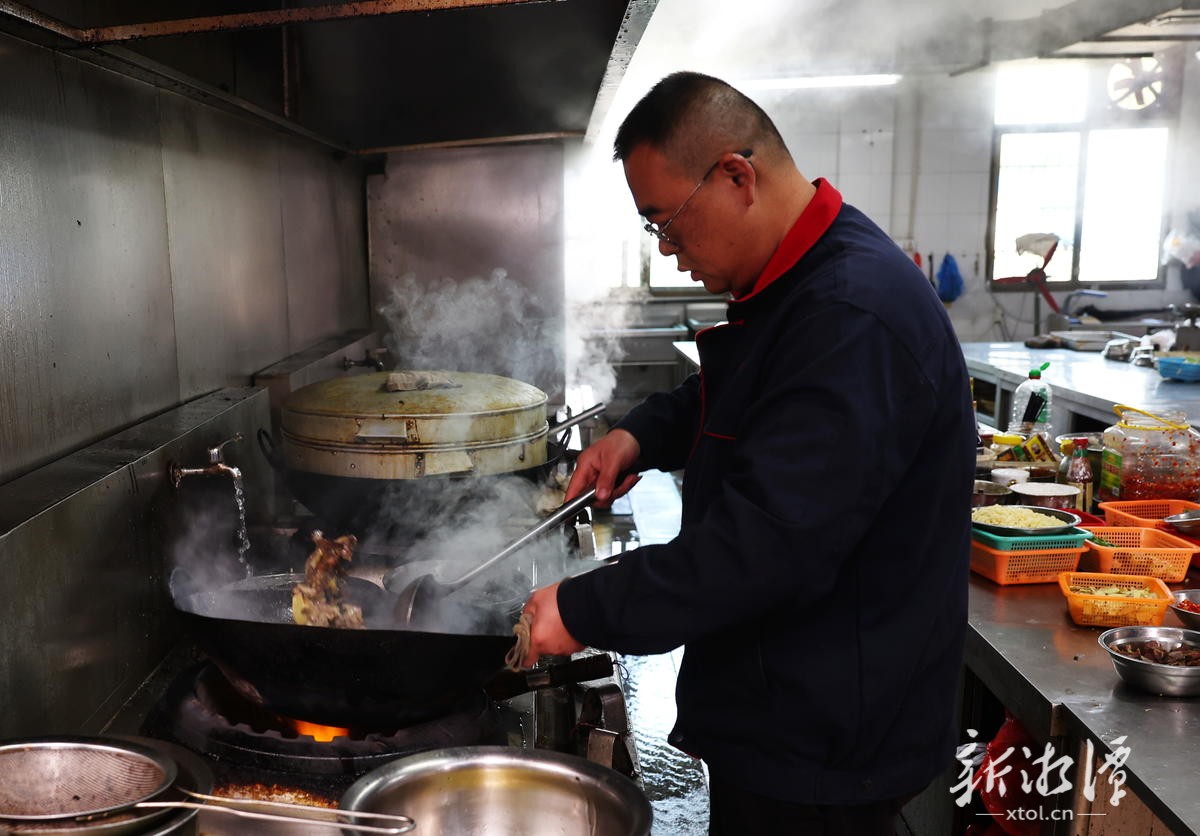 厨师精心烹饪老铁腊味。(李新辉 摄)