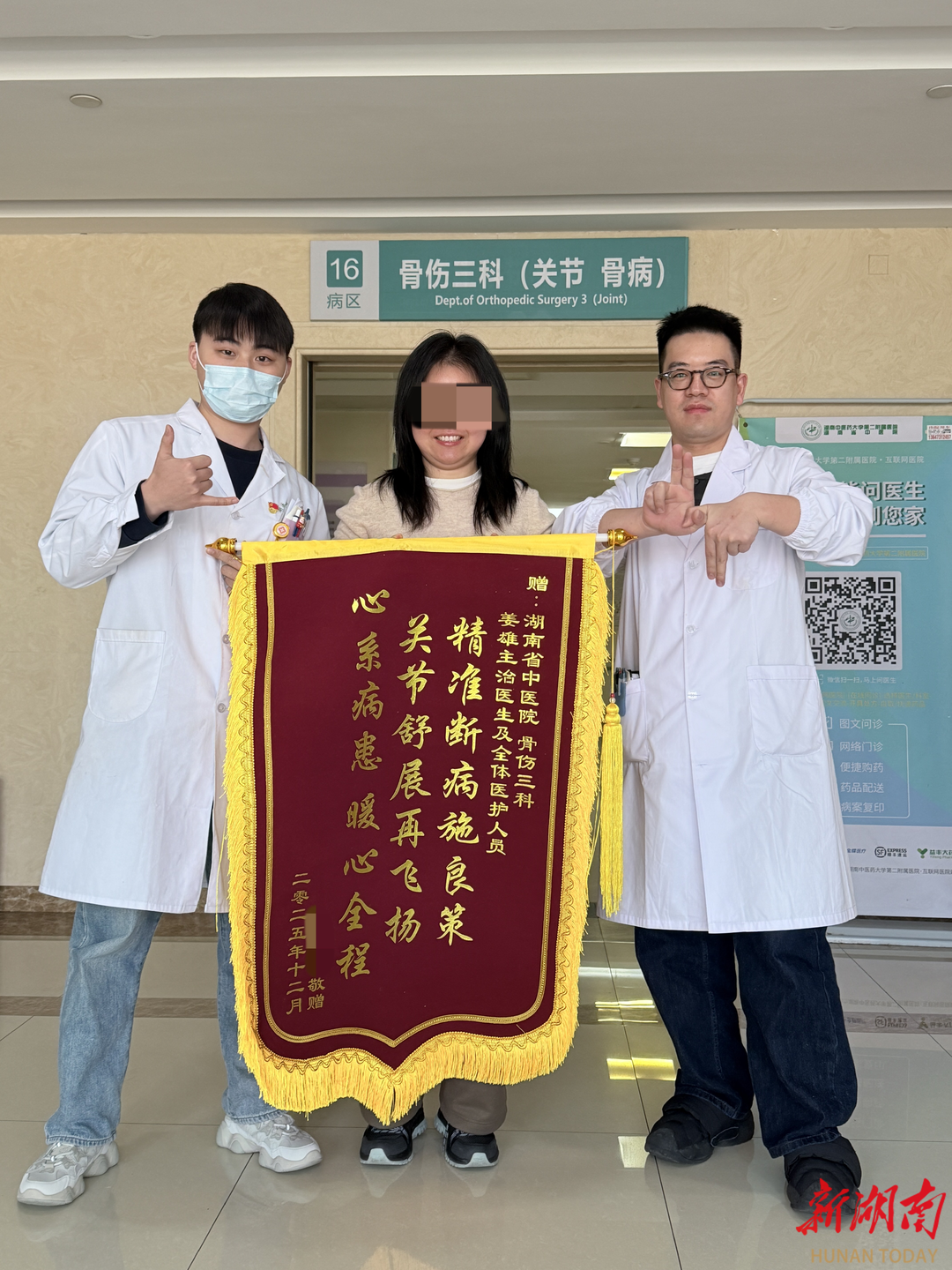 大众卫生报·新湖南客户端1月14日讯(通讯员 刘丹 丁强盛)“感谢省中医院骨科医护团队,我终于能好好走路了……”近日,备受膝关节疼痛困扰的朱女士在湖南中医药大学第二附属医院(湖南省中医院)治疗半个月后,顺利恢复了行走自由,她激动地为医院骨伤三科、四科医护团队送上锦旗表示感谢。原来,朱女士因在国外游玩时走路过多造成膝盖损伤,在国外治疗后并未缓解,在该院接受骨科康复一体化治疗后终于告别疼痛。