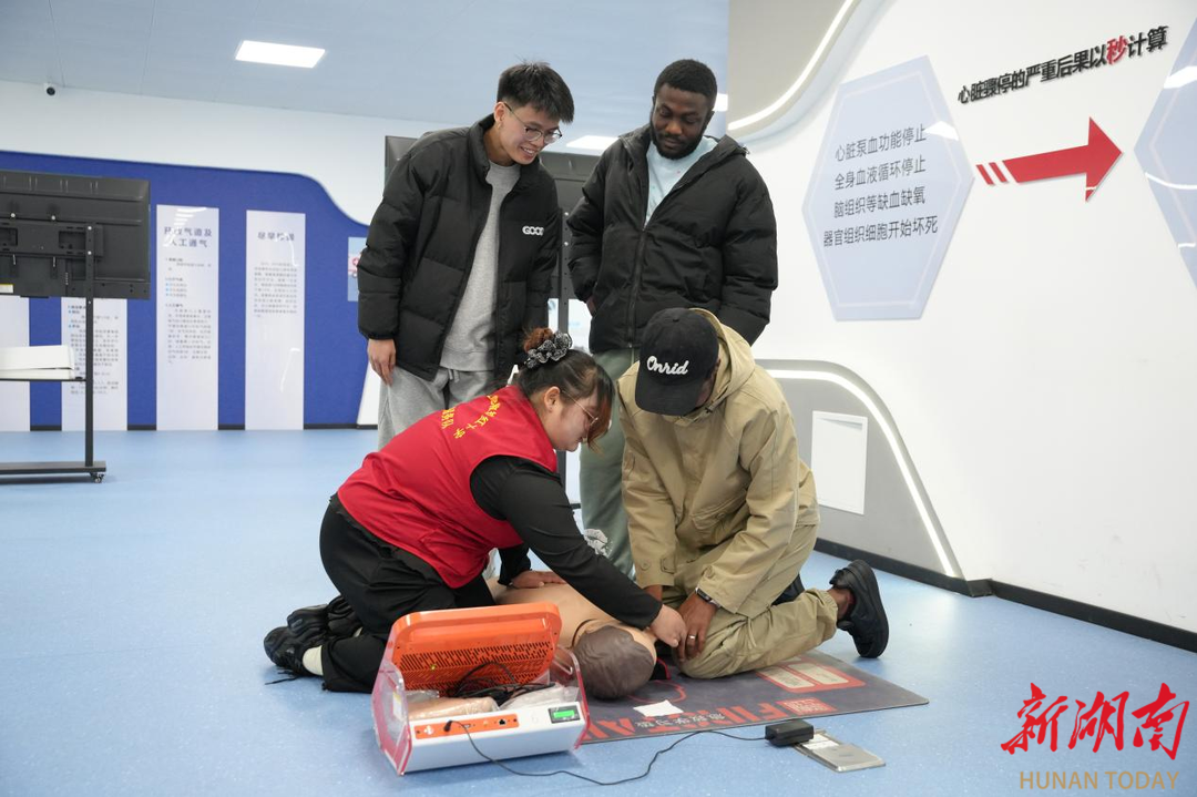 湖南日报·新湖南客户端1月14日讯(通讯员 何苗)1月13日,益阳医学高等专科学校联合湖南城市学院开展留学生急救教育交流活动。9名来自马来西亚、肯尼亚等国家的留学生,走进益阳医专急救培训基地解锁应急救护技能。