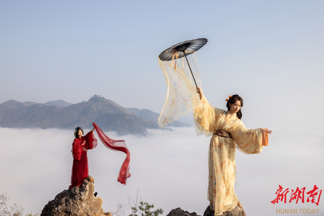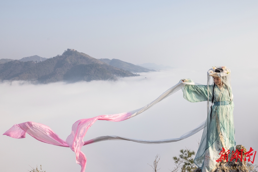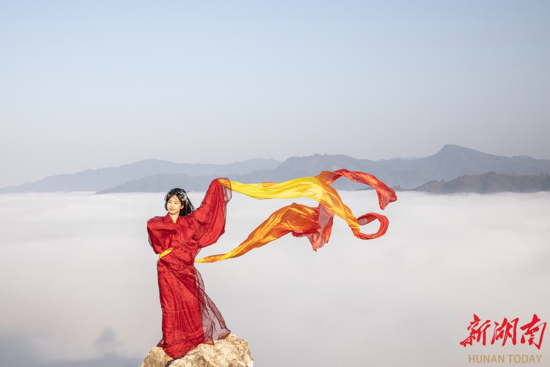 看,那些早早赶来打卡的小姐姐们,穿着漂亮的汉服或者时尚的冬装,在云海中翩翩起舞,仿佛是从画中走出来的仙子。她们的身影,和这绝美的景色融为一体,成为了洪江冬日里最亮丽的风景线。