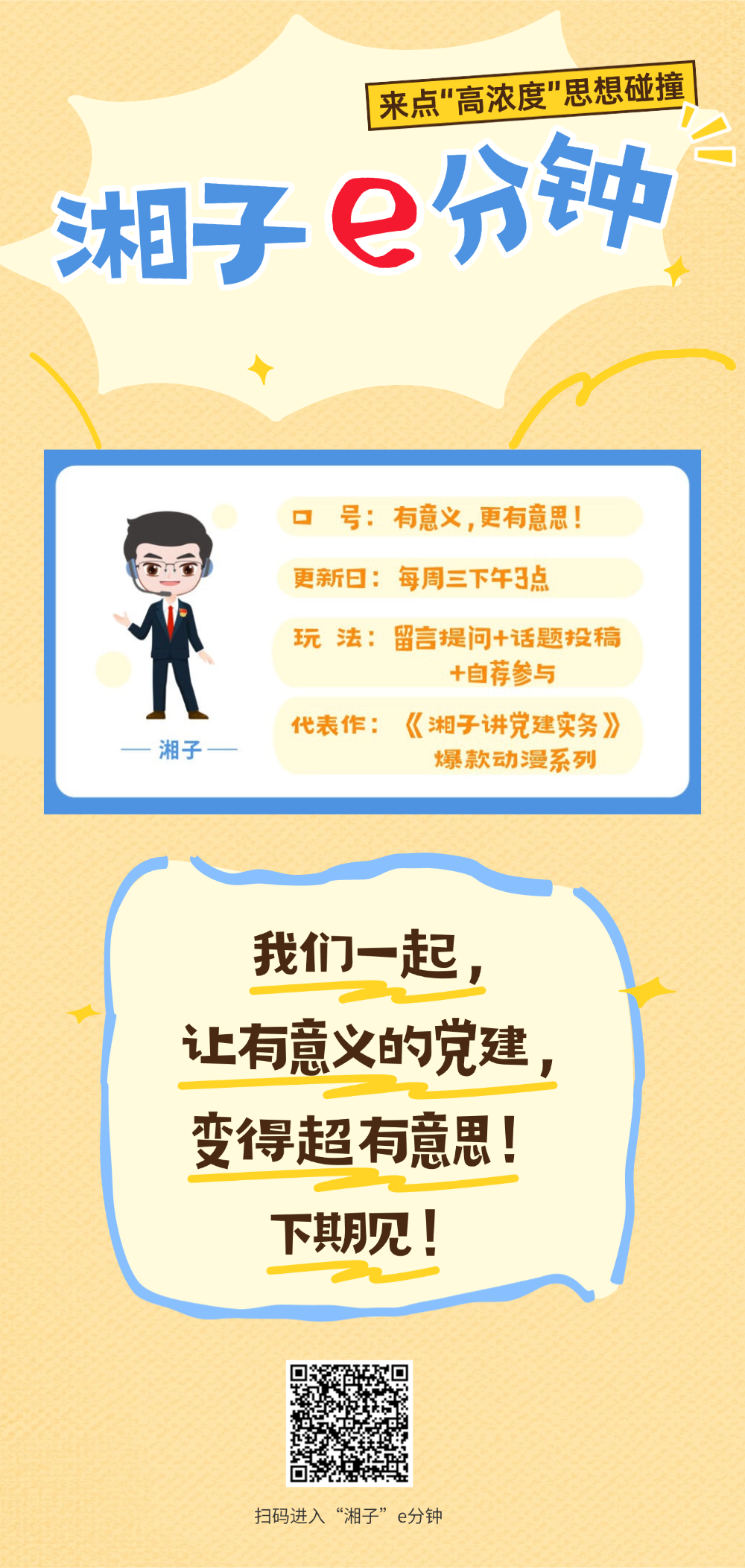 【编者按】为创新青年党员理论学习形式,即日起,湖南省直机关工委推出《“湘子”e分钟》专栏,专栏主理人湘子(取自“湘直党建”谐音)将结合党员教育工作实践,通过年轻化、轻量化、场景化形式,将党的创新理论、党员应知应会知识传递到党员身边,打造随时可用的“轻量级充电站”。