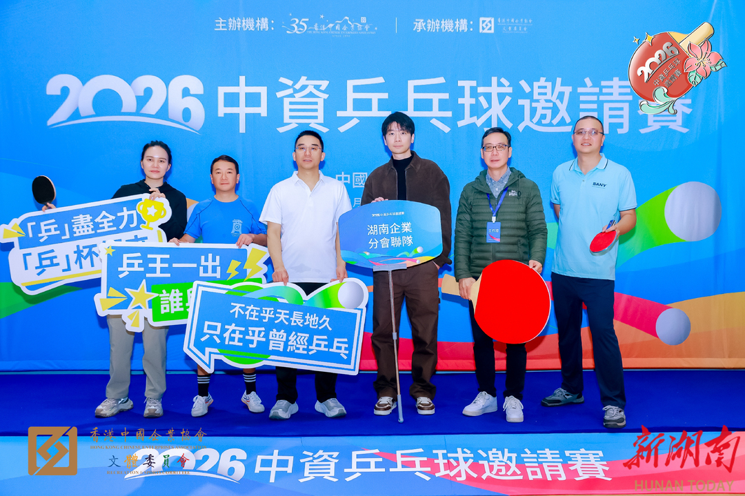 1月10日至11日,2026年度香港中国企业协会乒乓球邀请赛在香港南华体育中心圆满落幕。由三湘集团、三一香港、中富香港等湘籍企业组成的湖南联队,在男子单打项目中成功跻身八强,实现湖南企业分会于此项赛事的历史性突破。
