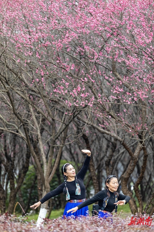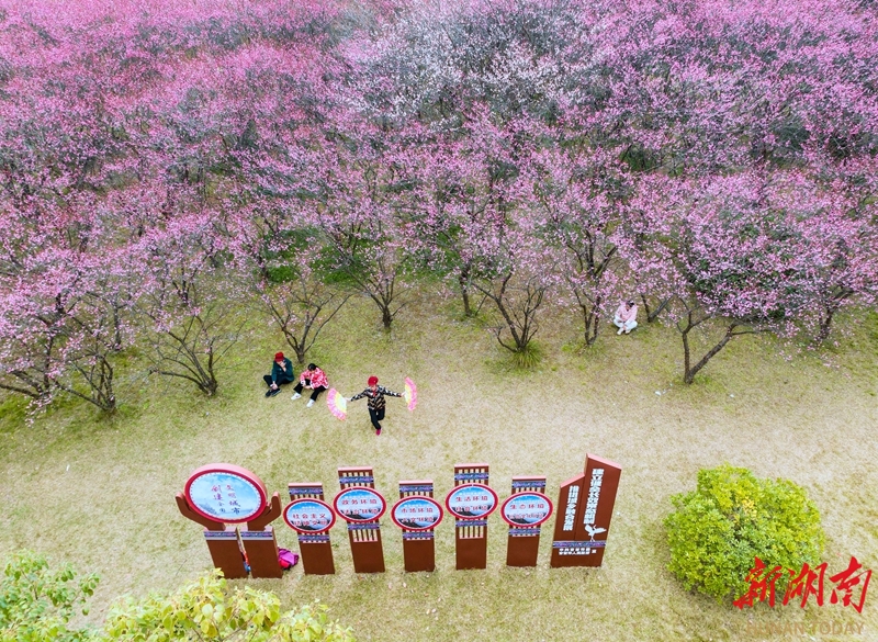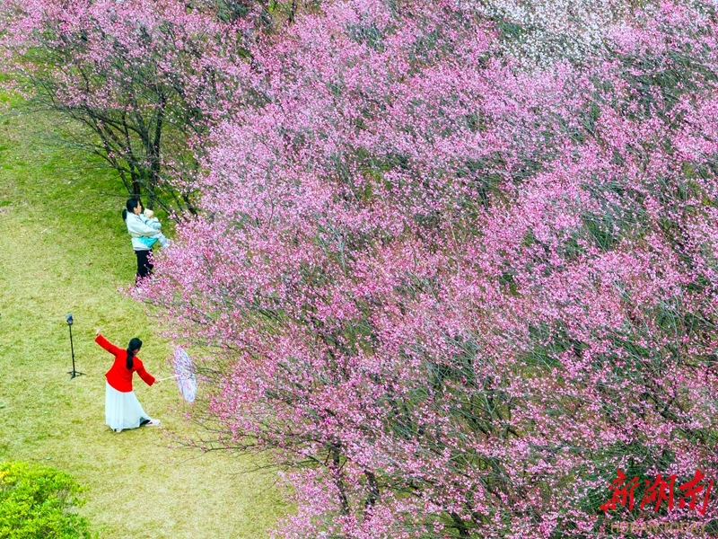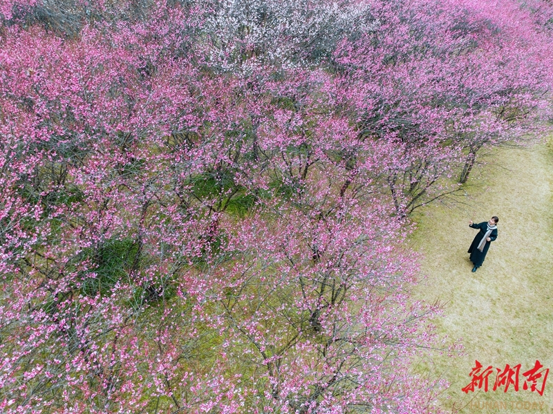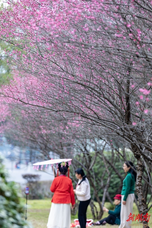 1月14日,吉首市乾州街道世纪大道的梅林里,市民们或驻足欣赏,或拍照留念,尽情享受这难得的“梅”好时光。时下,乾州古城的多处梅花已进入盛花期,清香四溢,为城市增添了一道亮丽的风景,吸引不少市民游客前来寻梅。彭璟 摄(湖南图片库)