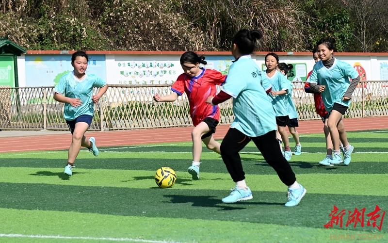 1月14日,洞口县山门镇市镇完全小学,学生在参加校园足球比赛。近年来,该校通过完善体育设施,组建班级、校级体育社团,举办校园联赛等措施,让学生在运动中享受快乐、增强体质。滕治中 米赛男 摄影报道(湖南图片库)