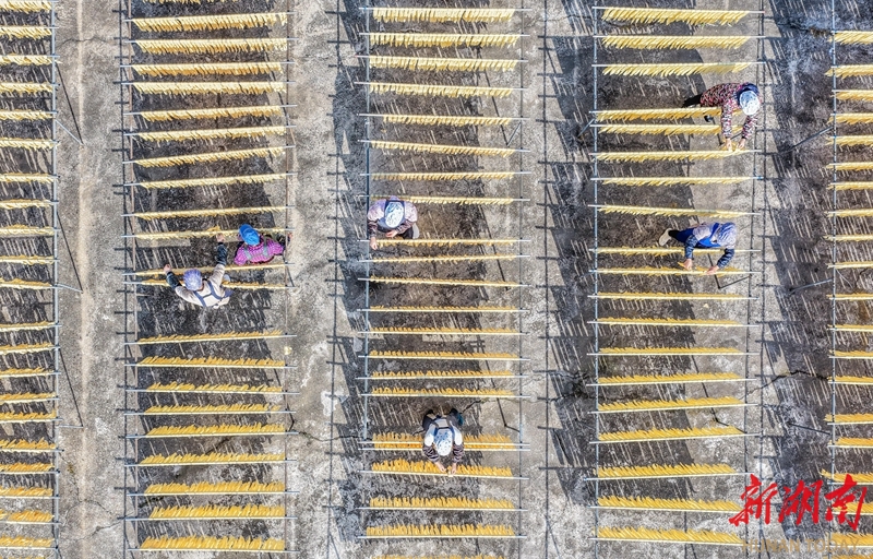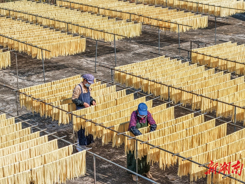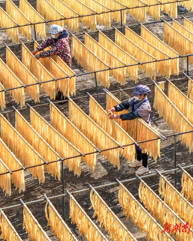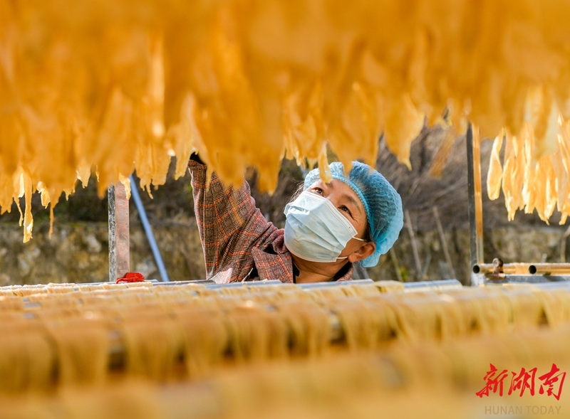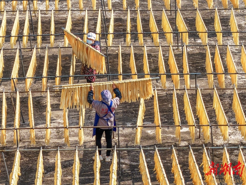 1月14日,江华瑶族自治县白芒营镇生优食品厂,工人在晾晒腐竹。近年来,该县积极发展腐竹产业,生产的腐竹远销省内外,有效带动当地农民增收致富。蒋克青 杨丁香 摄影报道(湖南图片库)