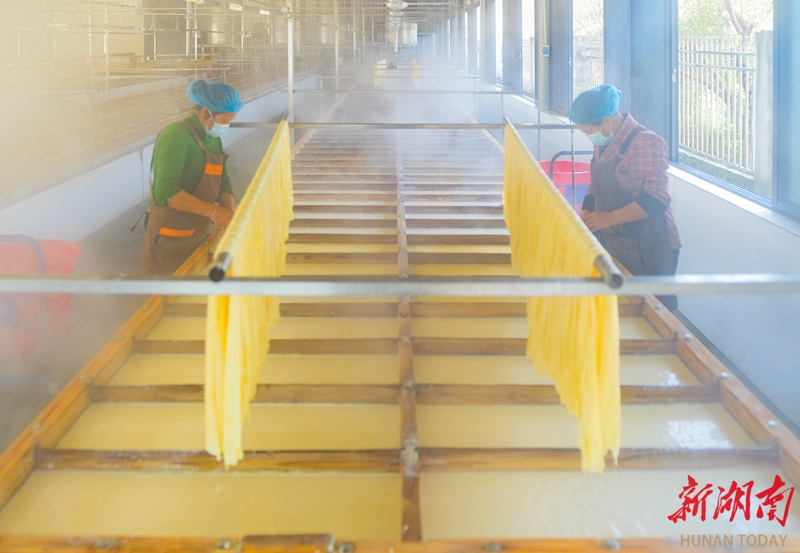 1月14日,江华瑶族自治县白芒营镇生优食品厂,工人在加工腐竹。近年来,该县积极发展腐竹产业,生产的腐竹远销省内外,有效带动当地农民增收致富。蒋克青 杨丁香 摄影报道(湖南图片库)