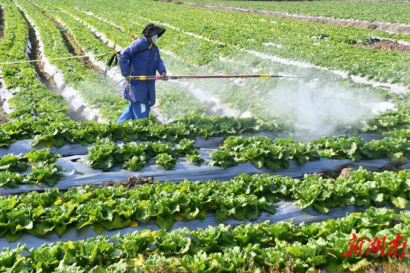 1月14日,江永县潇浦镇下界头村供港蔬菜基地,村民在管护蔬菜,确保粤港澳大湾区春节期间市场供应充足。 田如瑞 摄(湖南图片库)