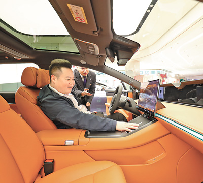 重庆市沙坪坝区三峡广场,市民在试驾新能源汽车。 孙凯芳摄(影像中国)