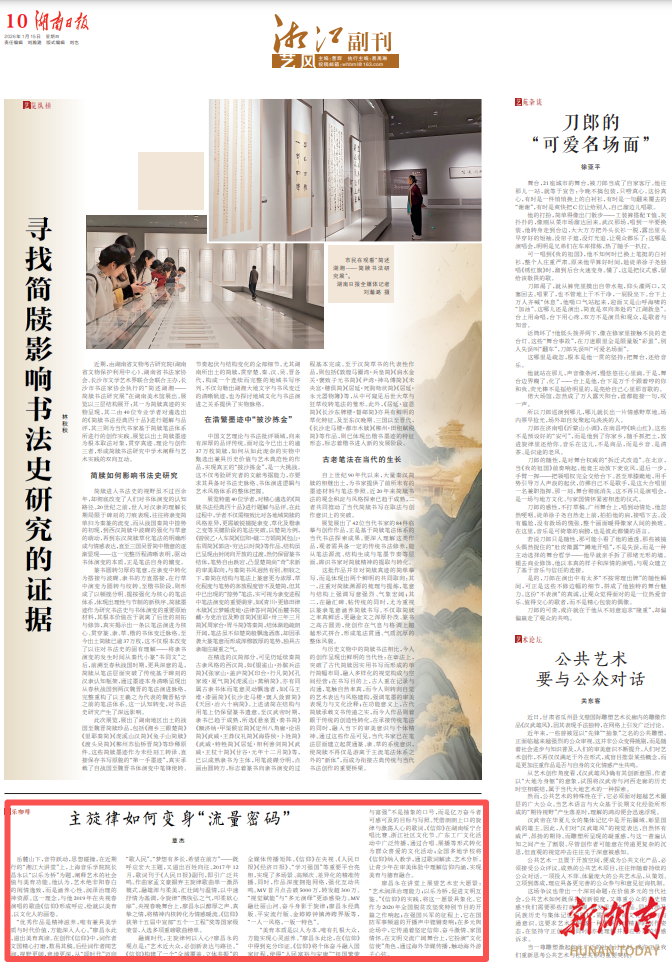 岳麓山下,音符跃动,思想碰撞,在近期举行的“湘江大讲堂”上,上海音乐学院院长廖昌永以“以乐为桥”为题,阐释艺术的社会价值与美育功能。他认为,艺术绝非阳春白雪的闲情逸致,而是涵养心性、润泽治理的精神资源。这一理念,与他2019年在央视春晚演唱的歌曲《信仰》形成呼应,绘就以美育人、以文化人的画卷。