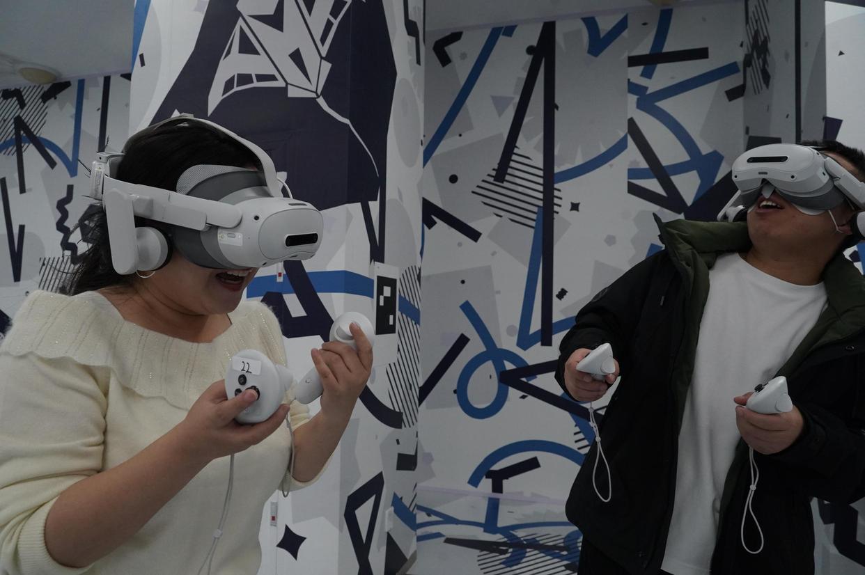 坐落于798艺术区的798超维视界,是国内首家虚拟现实影院。在这里,观影体验不再是传统的“观看”电影,而是真正“走进”电影,成为电影的一部分。这里共3500平方米,设有6个影厅,其中既有行进式影厅,也有坐观式影厅,还有一个《唐朝诡事录·西行》场景厅。目前,影院可放映片单已更新至15部,其中包括《地心游记》《浪浪山小妖怪:幻境奇旅》《木兰2125》《火星登陆计划·起源》等多部已获得“龙标”的VR电影。观众张先生体验完《浪浪山小妖怪:幻境奇旅》后赞不绝口,连连惊叹VR电影的奇妙。“以前玩过的VR设备画质低、故事老套、互动性弱,这次不仅故事背景、人物设定和《浪浪山小妖怪》保持一致,画面也非常好看,沉浸式互动的真实感特别强!”
