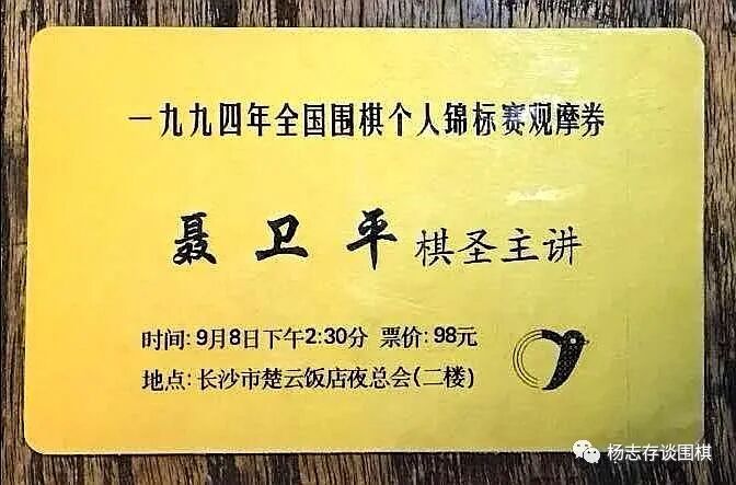 图为聂卫平棋圣讲棋观摩券。
