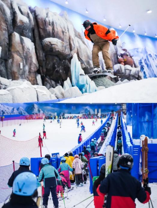 雪道采用真雪造雪技术,雪质松软细腻,与天然雪场别无二致。贴心的是,滑雪门票包含了头盔、雪服、雪具、雪鞋(单板、双板二选一)等全套专业装备,无需额外付费租赁,新手也能轻松入门。园区还会提供基础的滑雪指导,帮助初学者快速掌握平衡技巧,解锁人生新技能。