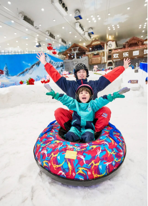 如果说滑雪区是成年人的竞技场,那么玩雪区就是全年龄段的欢乐海洋。