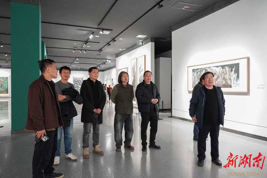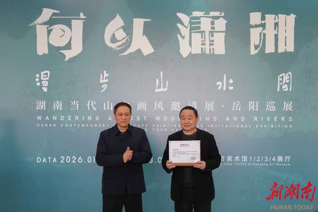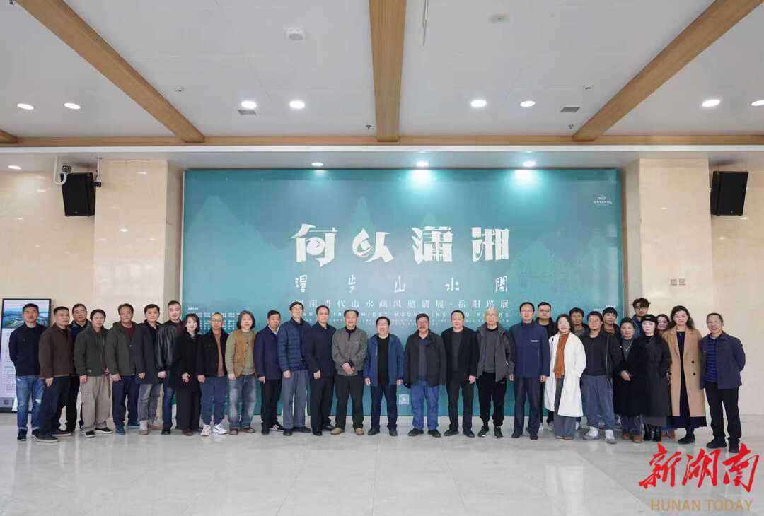 湖南日报·新湖南客户端1月15日讯(记者 徐典波 通讯员 万琴 刘康乐 )天地有大美,山水看潇湘。今天,何以潇湘——“漫步山水间”湖南当代山水画风邀请展·岳阳巡展开幕。96位艺术家的130件精品力作参展,首次系统展现湖南山水画近百年发展脉络,为市民奉上一场高雅艺术盛宴。