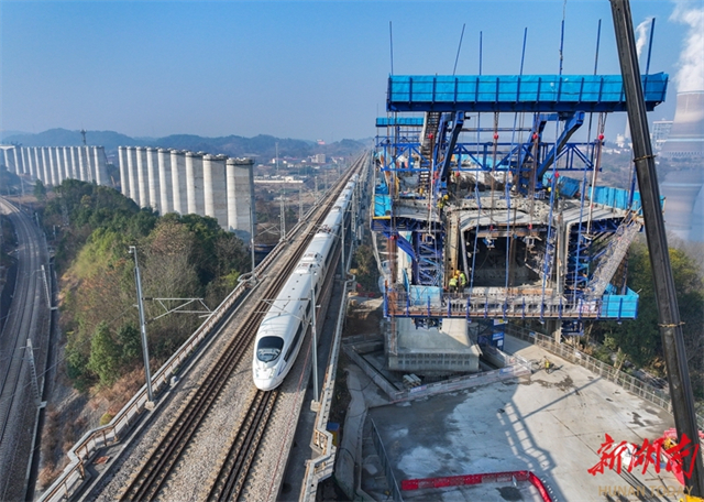 On January 14, workers carried out construction operations on a grand bridge along the Shaoyang-Yongzhou High-speed Railway crossing over the Shanghai-Kunming Expressway. Currently, the swivel bridge engineering along the Shaoyang-Yongzhou High-speed Railway—undertaken by the China Railway No. 4 Engineering Group Co., Ltd.—has entered the critical phase of upper structure construction.The bridge stands as one of the key controlling projects for the Shaoyang-Yongzhou High-speed Railway. The high-speed railway spans approximately 96 kilometers with a design speed of 350 kilometers per hour. It serves as a vital segment of the Hohhot-Nanning High-speed Railway in China's high-speed rail network that centers around eight main vertical lines linking the north and south and eight horizontal lines connecting the east and west. Upon completion, the Shaoyang-Yongzhou High-speed Railway will significantly improve the regional railway network layout and promote the high-quality development in central regions of China. (Photo/Guo Liliang, Hunan Daily)