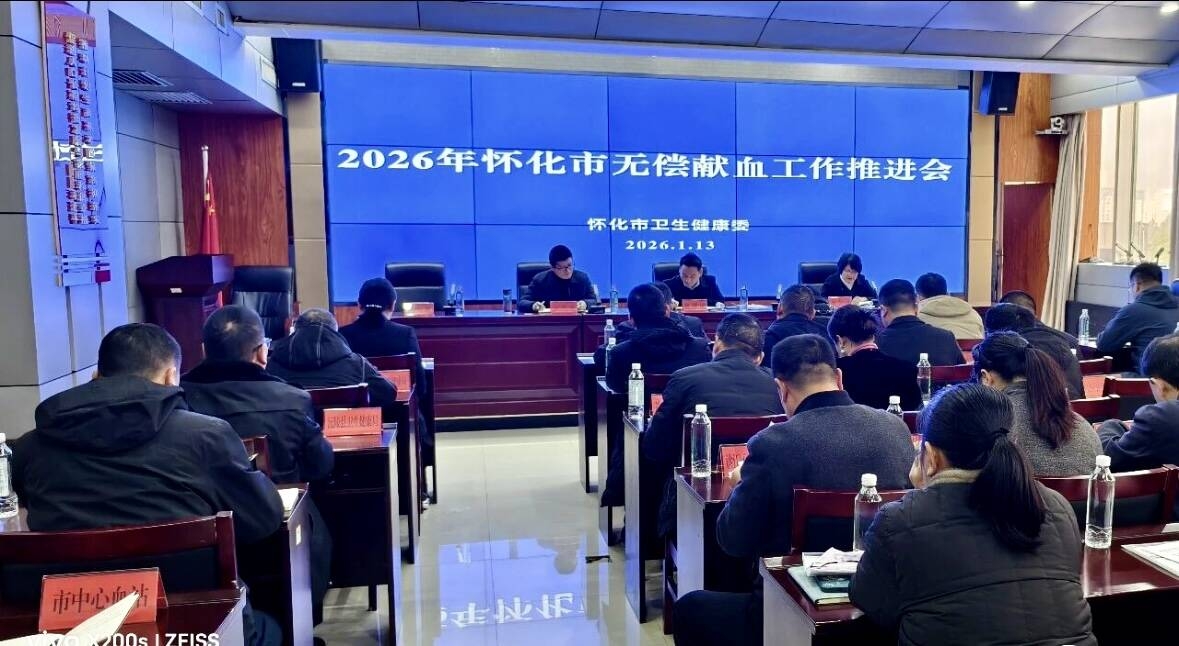 1月13日,怀化市2026年无偿献血工作推进会在市卫生健康委员会举行。会议全面总结了2025年全市无偿献血工作成效,深入分析当前面临的新形势、新挑战,周密部署2026年重点工作及春节期间临床血液保障工作。