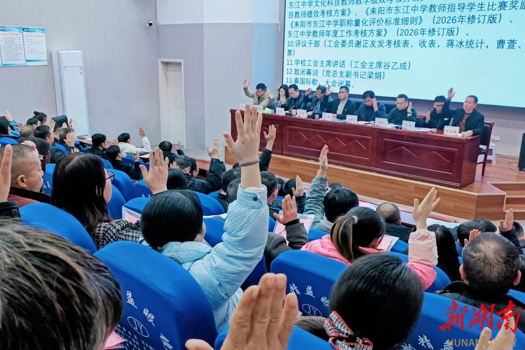 湖南日报·新湖南客户端1月15日讯(通讯员 刘琳 邓美玉)1月14日晚,耒阳市东江中学召开第一届教职工代表大会第五次会议,95名教职工代表齐聚一堂,共商学校发展大计。会议以“落实民主管理,深化教育改革”为核心,完成各项议程,为学校高质量发展注入新动力。