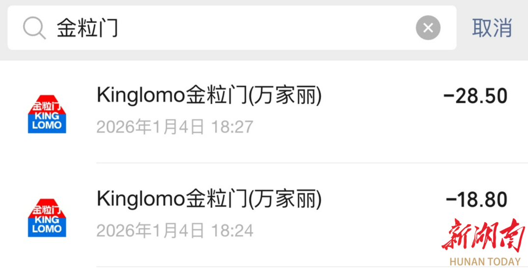 刘女士检索的支付记录中,1月4日在金粒门下单两次,可小程序中仅查到一次购物记录,怀疑订单被删除。(图为支付记录)