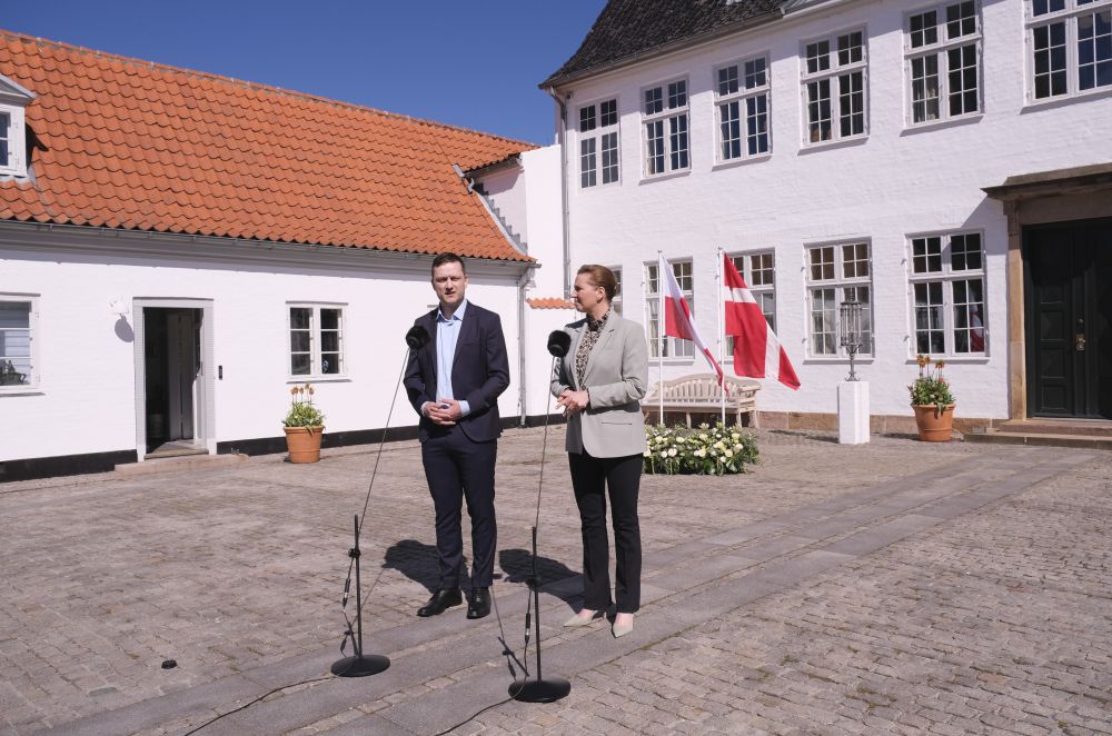 2025年4月27日,在丹麦哥本哈根附近的马林堡,丹麦首相弗雷泽里克森(右)与格陵兰岛自治政府总理延斯-弗雷德里克·尼尔森共同会见记者。据报道,法国、瑞典、德国都表示将向格陵兰岛“派兵”,但兵力都不多,比如德国宣布派出的只是一个13人侦察小组。