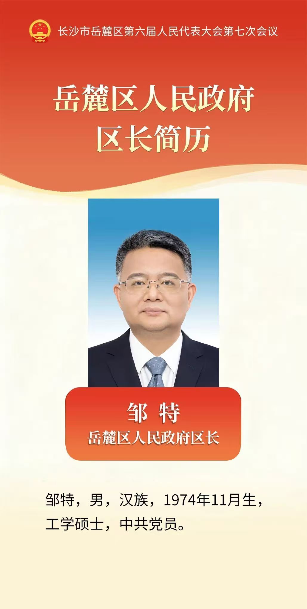 经过大会选举,邹特当选岳麓区人民政府区长。