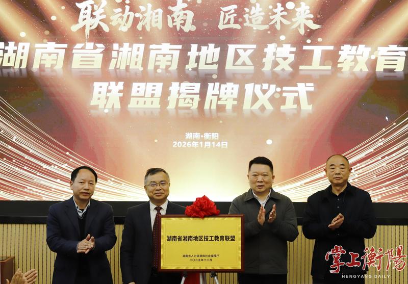 1月14日上午,湖南省湘南地区技工教育联盟成立大会暨揭牌仪式活动在衡阳技师学院举行。活动以“联动湘南,匠造未来”为主题,标志着湘南三市技工教育区域协作迈入新阶段,将为区域内经济社会高质量发展注入强劲技能人才动力。