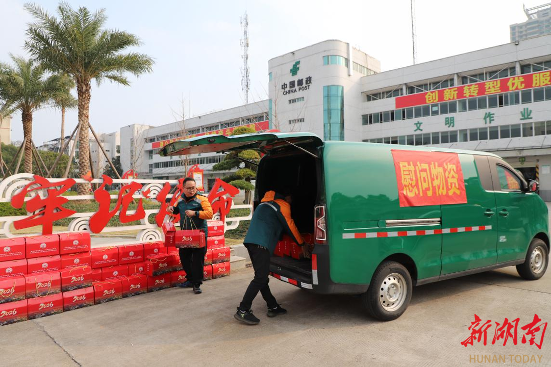 湖南日报·新湖南客户端1月15日讯(记者 张子欣 通讯员 李无我)暖意融融,情意深深。1月15日下午,衡阳市退役军人事务局和衡阳市邮政分公司联合举行精简但热烈的2026年春节专项慰问物资寄送启运仪式,将饱含衡阳人民深情厚谊的春节慰问物资寄送给边海防指战员。此次活动主题为“关心慰问边海防官兵”,用千里邮路架起拥军连心桥,让坚守边疆的人民子弟兵感受到新春浓浓的“衡阳温情”。