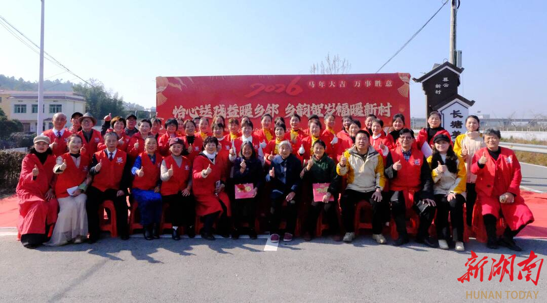 湖南日报·新湖南客户端1月15日讯(通讯员 彭彦婷)1月14日上午,在长沙市天心区委社会工作部、天心区民政局、天心区暮云街道办事处的指导下,天心区暮云街道暮云新村村民委员会联合天心区新村阳光志愿服务中心、天心区怡心怡益志愿服务中心,在风景如画的长塘组美丽屋场共同举办“怡心送戏益暖乡邻 乡韵贺岁福满新村”迎新春主题活动。