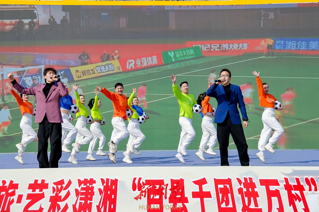 湖南日报·新湖南客户端1月15日讯(记者 龙文泱 通讯员 姚倩)冬日暖阳映乡村,欢歌笑语满潇湘。1月15日,文艺赋美乡村——湘遇文旅•艺彩潇湘“百县千团进万村”湖南群文轻骑队走基层展演活动在岳阳市平江县安定镇中县村举行。来自全省的400多名群文轻骑队的文旅志愿者齐聚,以歌舞为媒、以文化为桥,为当地群众献上了一场高品质的文化盛宴。