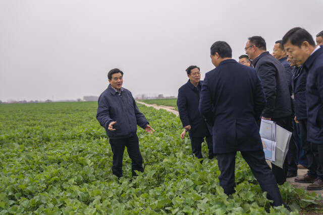 (2025年正月初九,省农科院专家在团洲垸油菜地里开“新春第一会”。童臻熙 摄)