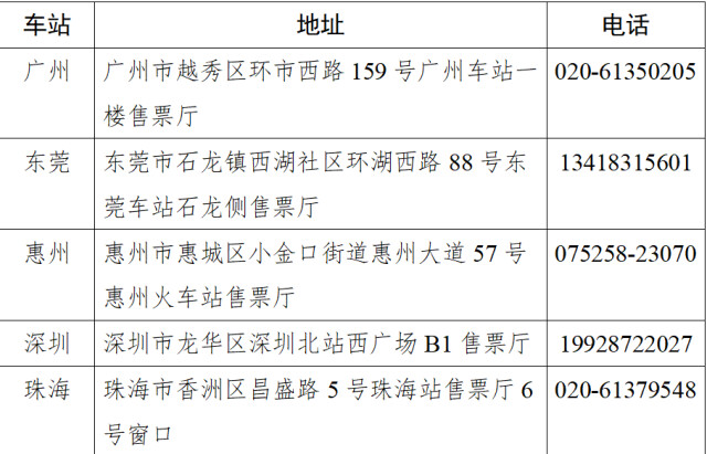 针对珠三角地区大型务工企业的集中出行需求,国铁广州局专设5个线下服务点受理包车厢、包列业务,全程专人对接保障。1月18日至1月30日,每日8:00-12:00,14:00-17:30期间,珠三角地区用工规模不少于300人的务工企业可于开车前20天到广州、深圳、东莞、惠州、珠海五个车站的专项办理窗口,现场办理同一日期、车次、方向、席别的300人及以上的包车厢、包列团体订票业务。订票时,具体可办理2月6日至2月14日广东地区始发、2月21日至2月28日湖南地区始发的部分列车。