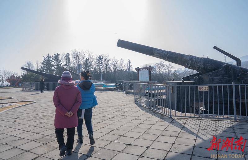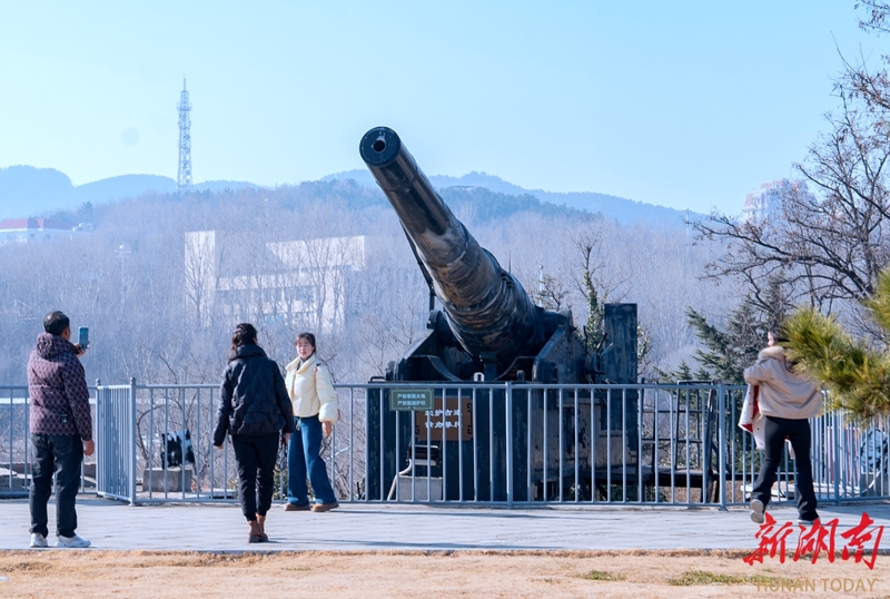1月15日,游客在烟台市东炮台遗址参观游览。该古炮台始建于1891年,现存设施包括台门、清兵营房、隐蔽所及地坑式炮位等,炮台上安置有复制的克虏伯大炮,是我国保存较完整的海防设施之一。 湖南日报全媒体记者 李健 摄