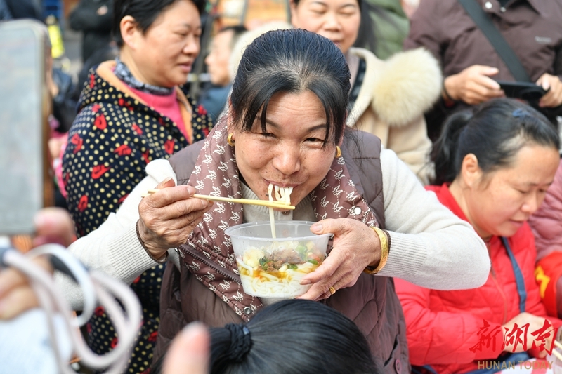 1月15日,长沙高桥大市场内暖意融融、香气四溢,一场充满乡土温情的免费“杀猪饭”热闹开席。众多市民依次入座,品尝这份承载着年俗记忆的美味。活动由市场内4名创业者共同发起,现场不仅备足了热气腾腾的菜肴,还安排了文艺表演、手写福字、趣味游艺等环节,让身处都市的人们在浓郁烟火气中,感受喜庆祥和的节日氛围。 湖南日报全媒体记者田超 摄