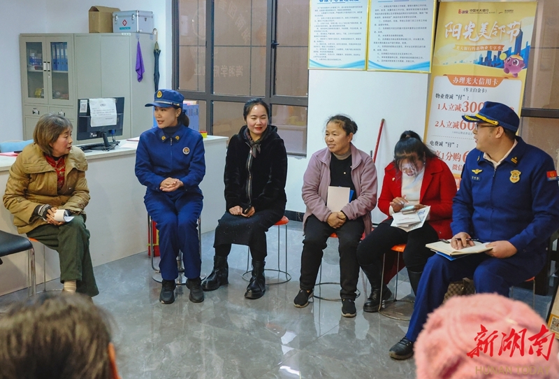 1月13日晚,永州市冷水滩区消防救援大队在海湘学府小区开展“左邻右舍聚一堂,夜话消防保平安”活动。消防员与居民围坐交流,讲解家庭防火要点,解答消防疑问,并现场帮助排查整改火灾隐患,让消防安全理念深入人心。张娟 黄傲然 摄影报道(湖南图片库)