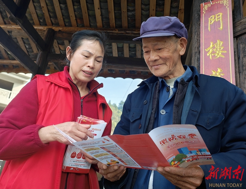 1月15日,通道侗族自治县双江镇向晖村,志愿者向村民讲解防火知识。连日来,该县组织志愿者深入乡村,开展“守护平安年”冬季消防安全宣传活动,通过发放资料、拉家常等形式,为人民群众生命财产安全和社会稳定提供坚实保障。陈俊宇 杨春艳 摄影报道(湖南图片库)