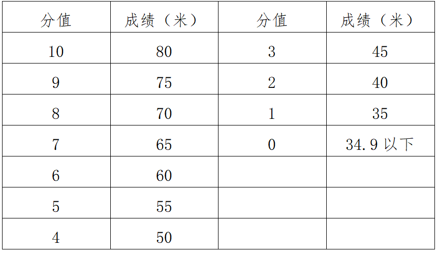 1.测试方法:队员原地双脚站立在起跳线后,起跳时不能触及或超越起跳线。第一跳双脚原地起跳,可以用任何一只脚落地;第二跳跨步跳,用着地脚起跳以另一只脚落地;第三跳双脚落地完成跳跃动作后,起身向前走出测试区。成绩测量时,从身体落地痕迹的最近点取直线量至起跳线内沿。队员可穿钉鞋。其他未尽事宜参照田径竞赛规则执行。每人测试2次,取最好成绩。