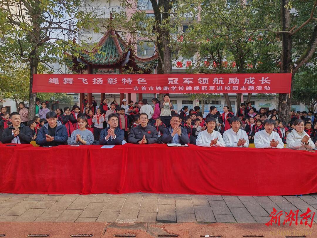 新湖南客户端1月16日讯(通讯员 杨云志 吴单 罗齐优)1月15日下午,吉首市铁路学校校园内绳影翻飞、掌声雷动,湖南省跳绳推广委员会专家携2025年跳绳世界冠军团队莅临,为学校“一校一品”特色建设及省级跳绳示范校创建注入强劲动能,全校师生共同见证了这场意义非凡的校园体育盛事。