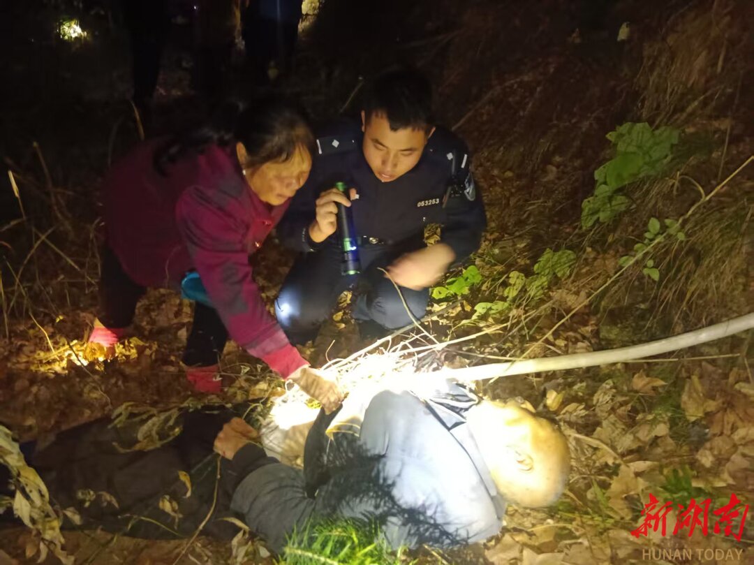 民警夜间找寻在山林中迷路的老人。