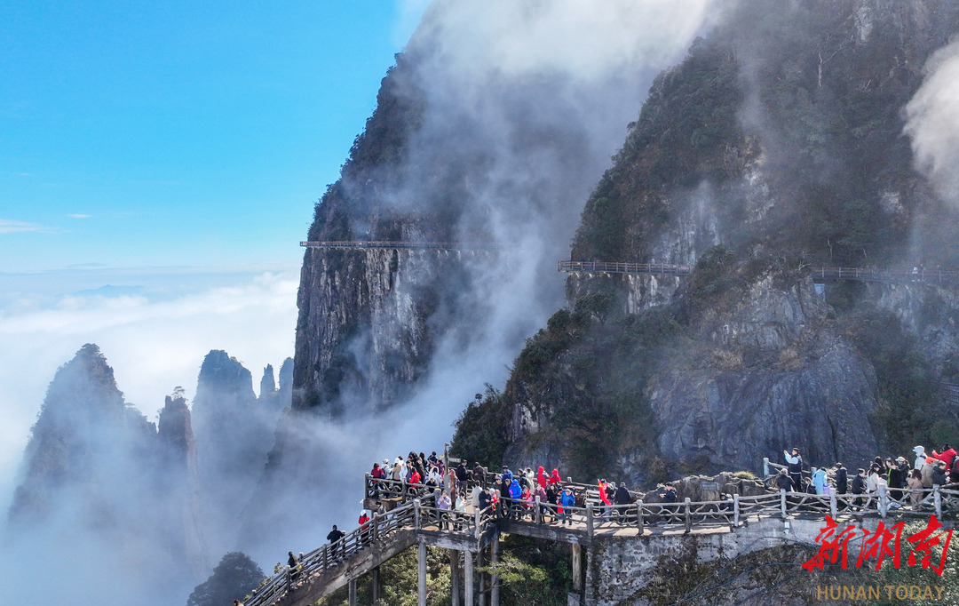 金应秀的青睐,正是莽山实力圈粉的缩影。作为地球同纬度保存最完好的原生型常绿阔叶林区,莽山不仅拥有“山险、水秀、林幽、石奇”的绝美风光,更以全链条无障碍设施惊艳四座——3700米高山索道、140米垂直电梯49秒直达云巅,11公里云间栈道平缓延伸,搭配爬楼机、提升机等设备,让老人、孩童乃至轮椅使用者都能“坐游”悬崖峭壁,轻松邂逅云海、雾凇、奇峰等景观。眼下正值莽山雾凇最佳观赏期,玉树琼枝的冰雪盛景,更为这座山岳增添了冬日浪漫滤镜。